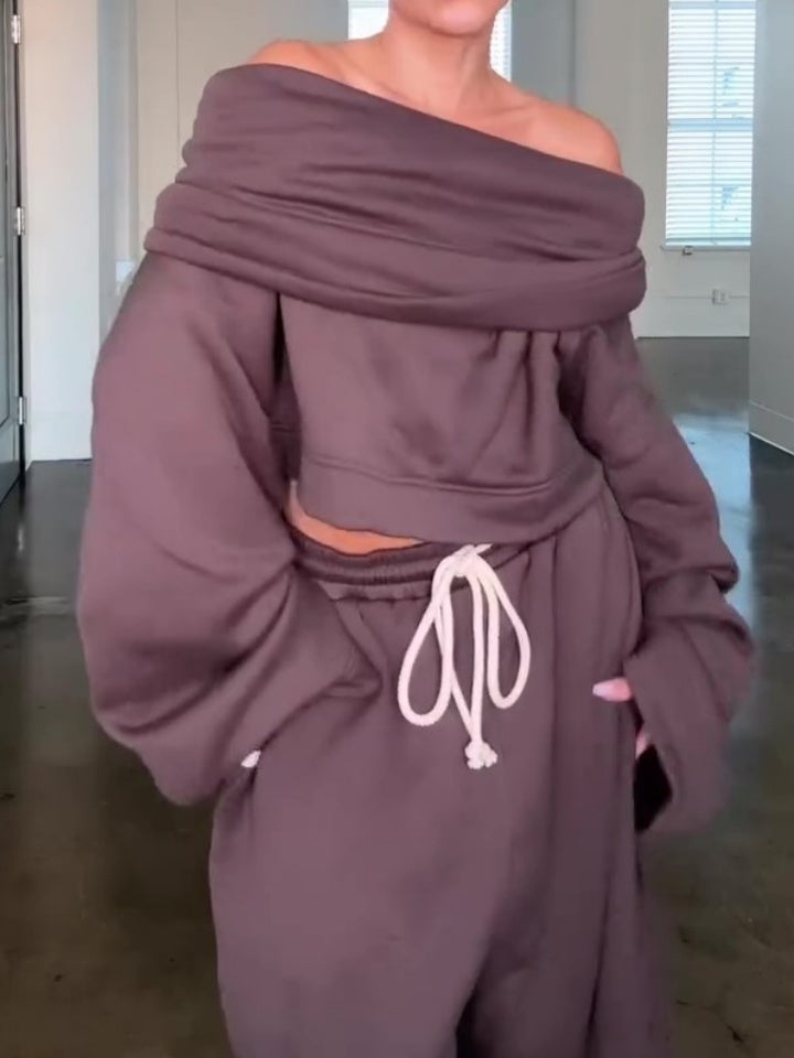 The Teddy Sweater - which is a doubled, thick squishy cropped ultra long cowl hoodie sweater with wide bell sleeves.
