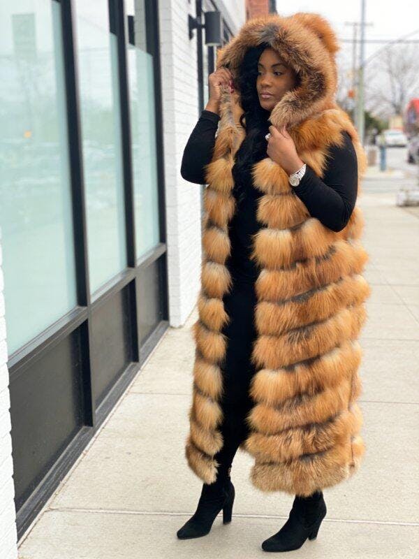 Indulge in luxury with our meticulously crafted full-length gold fox vest.