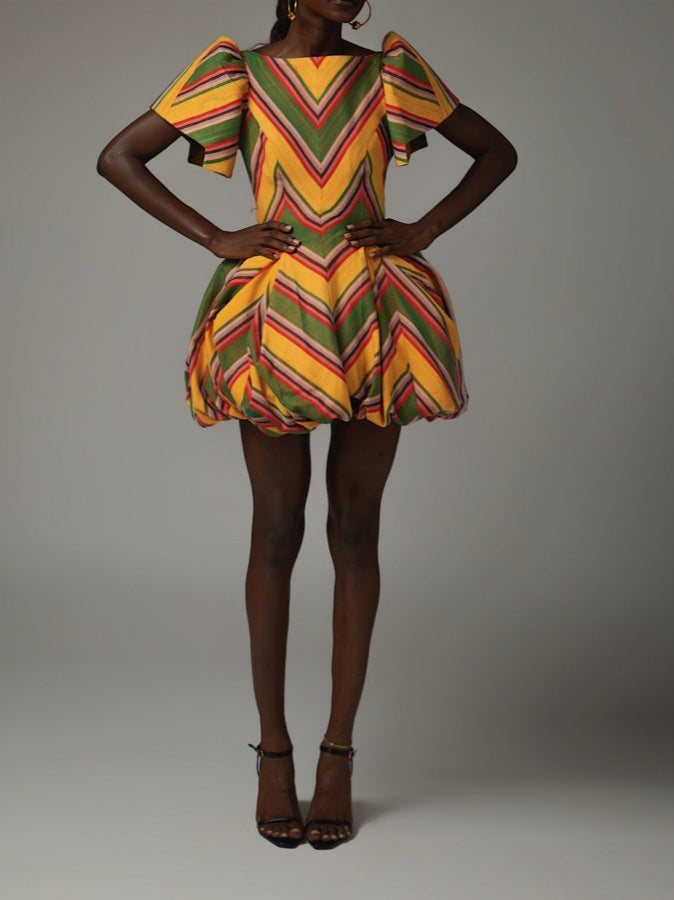 Take a fearless leap into fashion with our bubble dress! Handwoven with vibrant colors and bold patterns, this short dress is perfect for the daring woman. Made from high-quality cotton fabric, it's both stylish and comfortable. Embrace your boldness and turn heads with this unique dress!