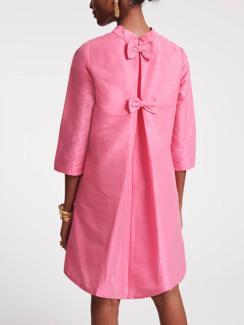 With its enduring allure of bows and pleats cascading down the silhouette, this mini dress will be a wardrobe hero for years to come. Its unabashedly feminine design will leave you resplendent in its style. Flirty mini dress with a sleek mock neckline for a polished look.