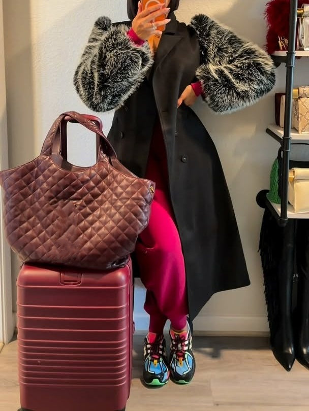 The Fur Sleeve Trench is crafted from buttery soft faux suede and features a classic notched lapels, luscious faux fur long sleeves, a double-breasted front, dual waist pockets, a back vent slit, and a sleek inner lining. Complete with an elegant, longline silhouette.