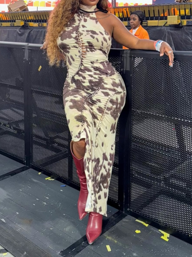 Halter Neck Strappy Backless Slim Dress