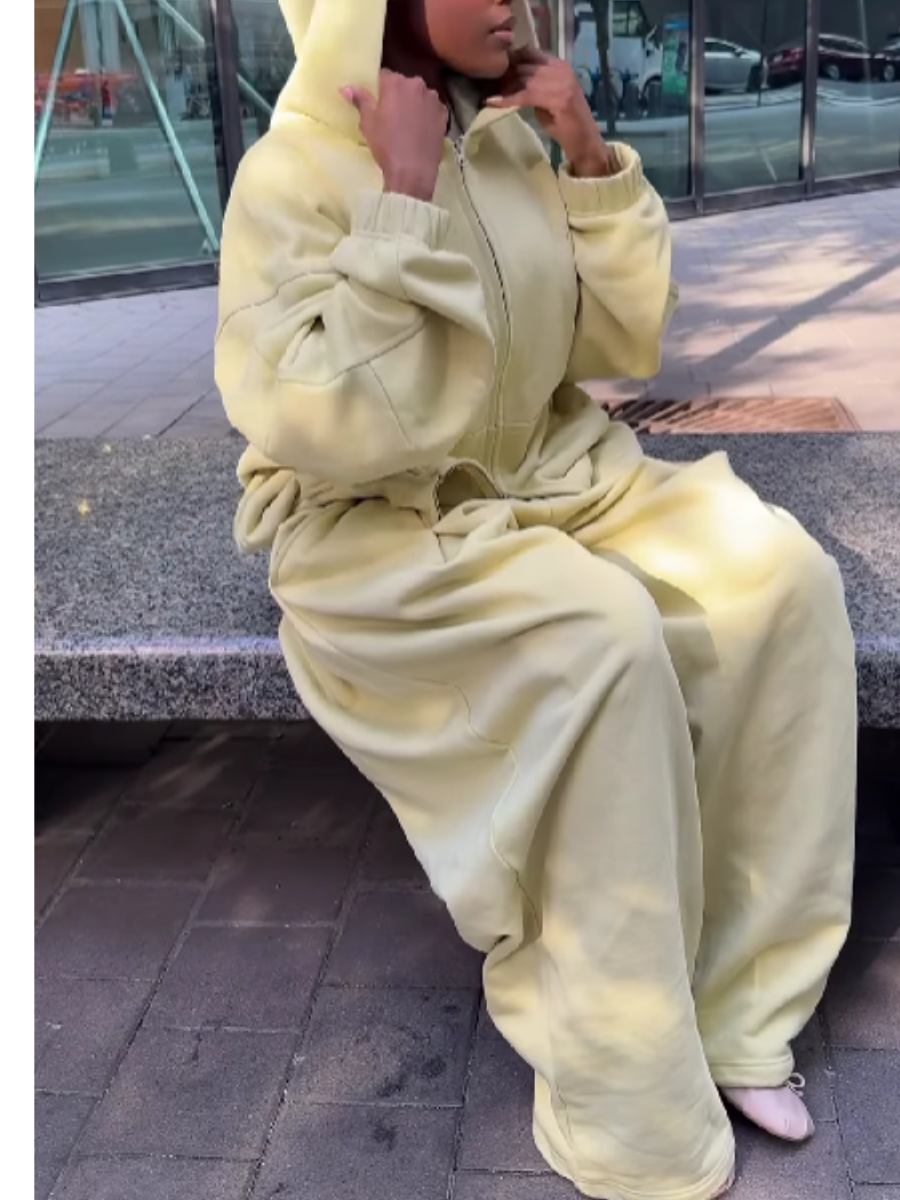 I really love this 2-piece set! The hoodie feels soft and cozy, perfect for casual days or just relaxing at home. The pants fit true to size and are very comfortable to wear all day. I like that I can use the pieces together or separately with other clothes. The fabric is lightweight but still warm, and the color looks exactly like the pictures. Definitely a great outfit for both comfort and style.