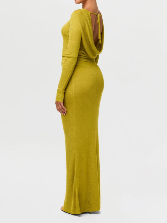This lightweight soft-knit set cascades down to your steps in a stunning color shade. Rests comfortably on the body with stretch and styles effortlessly. Dress up or down to create various versatile looks for a night on the town or brunch by the water.