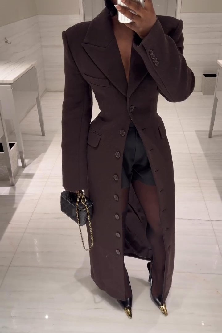 Large lapel Darted waist long coat