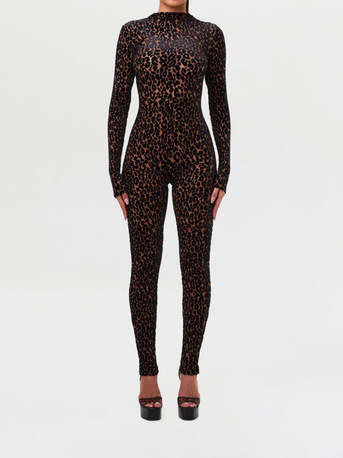 Our luxurious jumpsuit is formulated with a mock neckline, long sleeves, good stretch, a soft-to-the-touch feel, and body sculpting finish. Back zipper closure makes it simple to step into and put on. Style with heels or boots to complete the look.