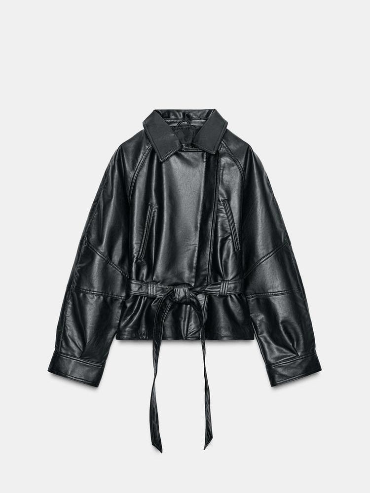 - Jacket with a lapel collar and long sleeves with cuffs.