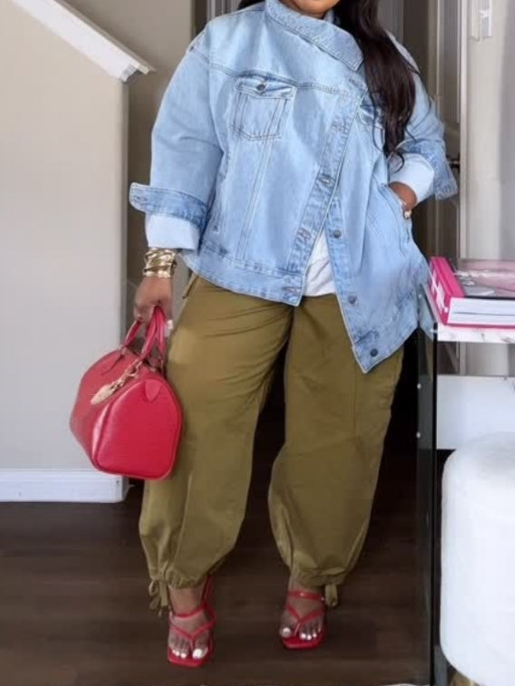 Slant-breasted Denim Jacket