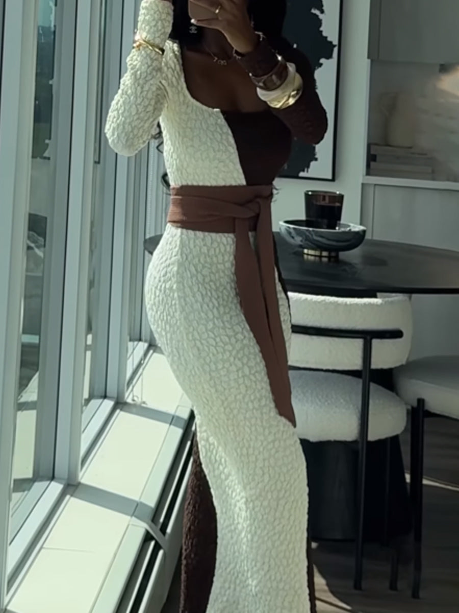 Square Collar Color Block Maxi Dress