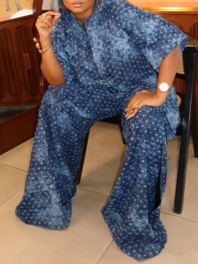 Stylish Hooded Denim Two-piece Set