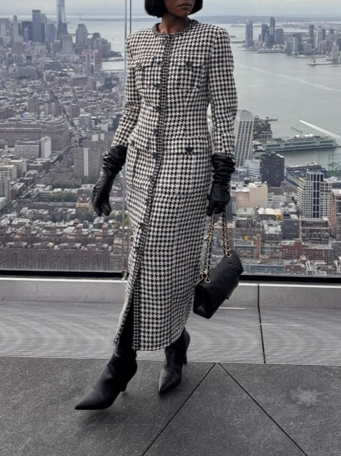 This tailored midi dress showcases expert craftsmanship with its refined button-through design and structured silhouette. The thoughtfully placed front pockets add both functionality and style, while the clean lines create a polished daywear option.